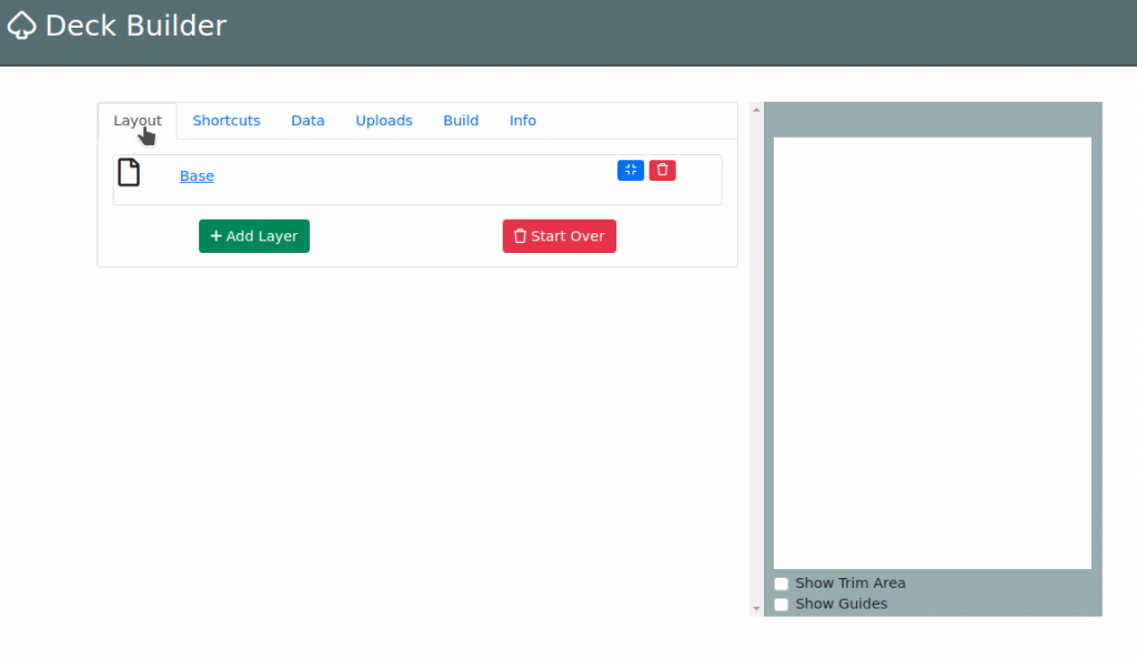This lets you create a card layout in real time, then gives you a spreadsheet that you can then use to create your deck. So, do the fussy layout work live on the web, and once it’s exactly what you want, use the spreadsheet to put all your card data into the machine. And viola, a deck of print ready cards pops out the other end.