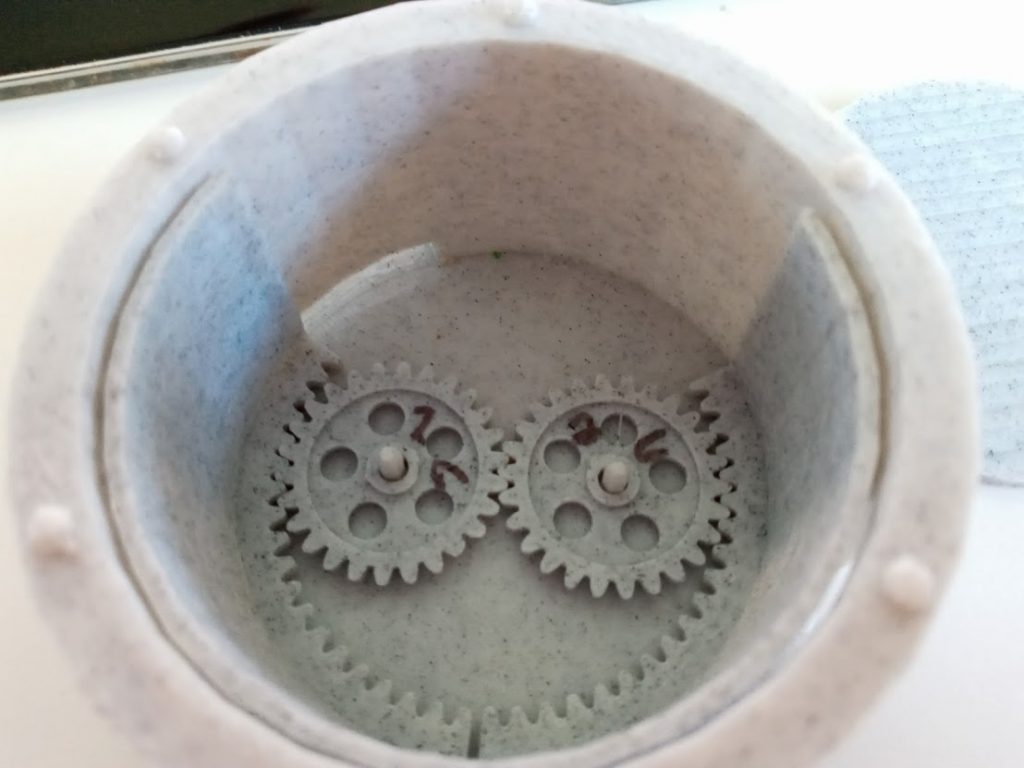 Step two: Drop the gears on the posts so they mesh up with the gears on the doors. The gears are identical, so it doesn’t matter which one goes on which side.